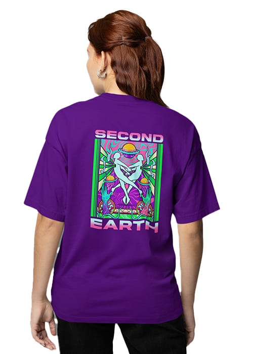 "SECOND EARTH" Graphic Printed WOMEN's DROP SHOULDER OVERSIZED TEEs
