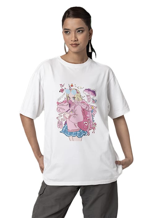 "UNICORN GIRL" Graphic Printed WOMEN's DROP SHOULDER OVERSIZED TEEs