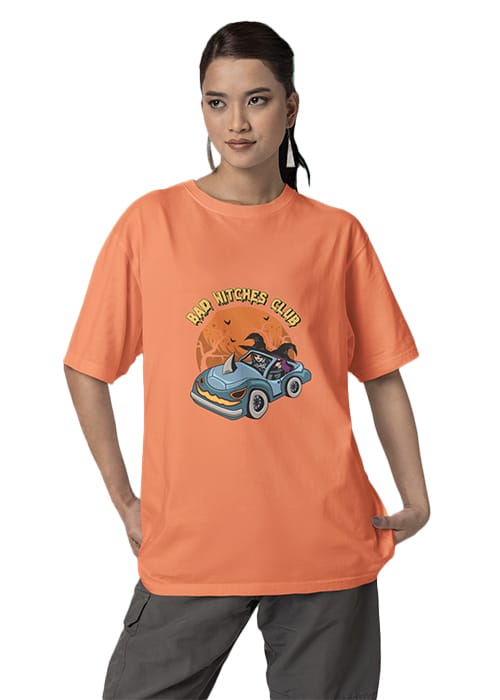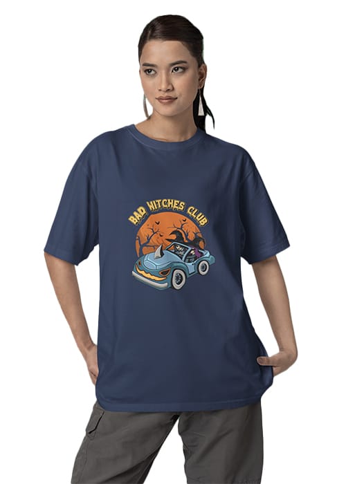 Step into the “BAD WITCHES CLUB” with our Graphic Printed Women’s Drop Shoulder Oversized Tee. Crafted from premium cotton, this unique piece features a bold graphic print, perfect for those who dare to stand out. Elevate your style with attitude and comfort in mind. Ideal for every occasion, from casual outings to statement-making workouts.