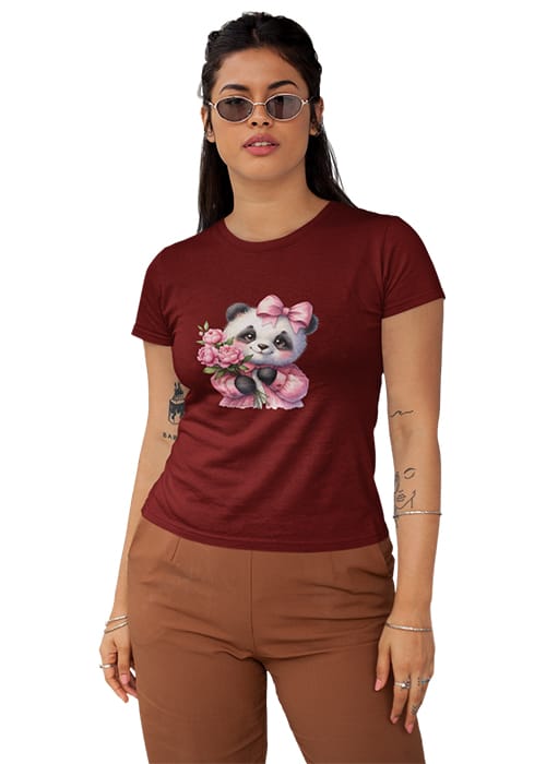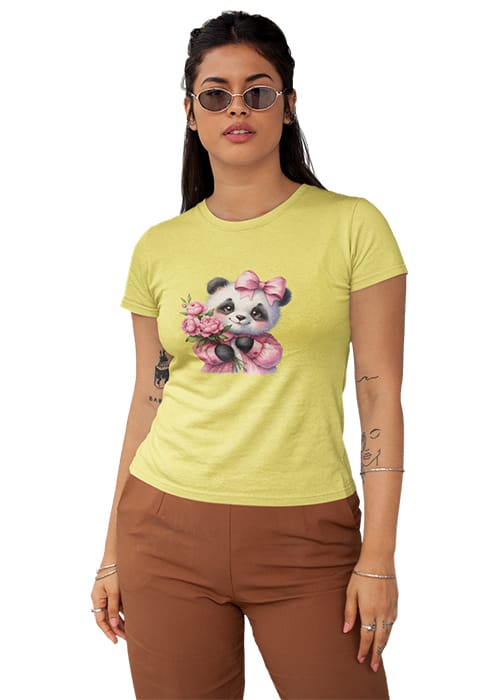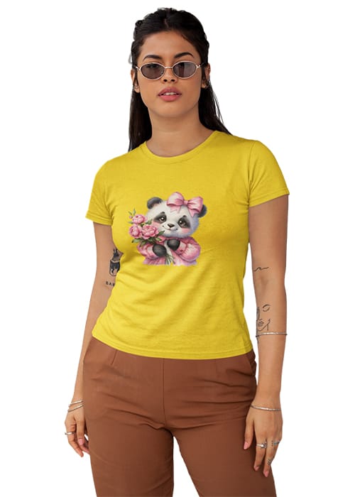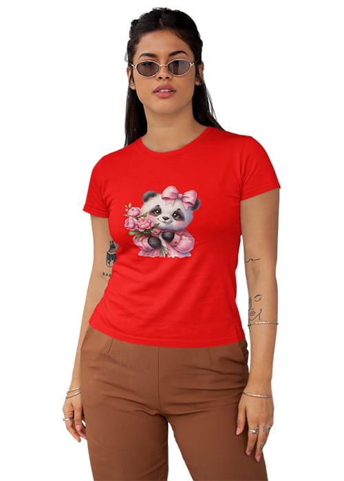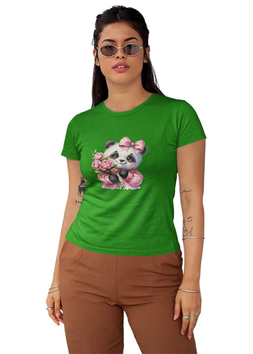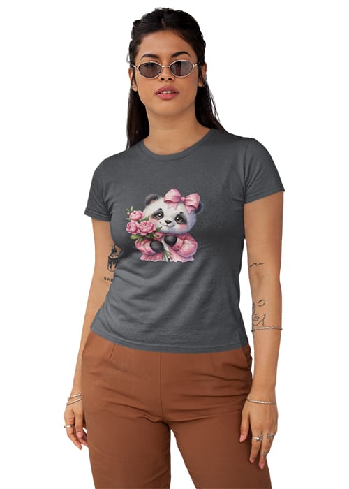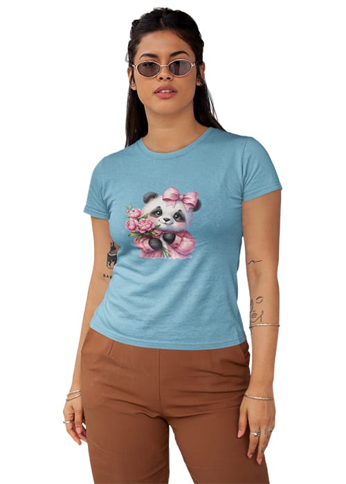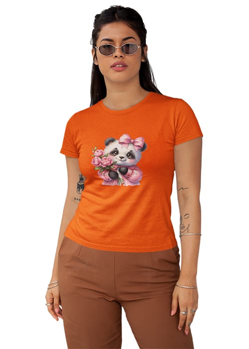 Introducing our adorable “CUTE BABY PANDA” Graphic Printed Women’s Round Neck Half Sleeve T-Shirt, the perfect blend of cuteness and comfort! Crafted from premium cotton, this tee features a charming graphic print showcasing a lovable baby panda surrounded by flowers, adding a touch of whimsy to your wardrobe. Whether you’re hitting the gym or simply embracing your day, its breathable fabric ensures comfort and flexibility, keeping you feeling fabulous all day long. Perfect for women who adore pandas and love to stay on-trend, this tee is a versatile addition to any wardrobe. Elevate your style with our “CUTE BABY PANDA” Graphic Printed Women’s T-Shirt and let your playful side shine!
