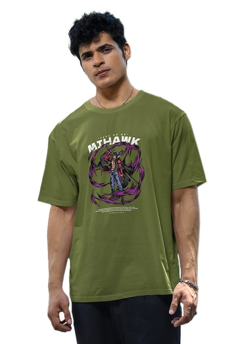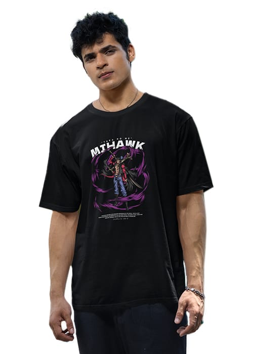 Introducing our captivating “ONE PIECE – MIHAWK” Graphic Printed Men’s Oversized Round Neck Half Sleeve T-Shirt, a must-have for anime enthusiasts and collectors alike! Crafted from premium cotton, this oversized tee features a striking graphic print showcasing the legendary character Mihawk from the iconic One Piece anime series. Perfect for showcasing your love for anime, this tee adds a touch of anime-inspired style to your wardrobe. Whether you’re hitting the gym or lounging at home, its breathable fabric ensures comfort and flexibility, keeping you feeling cool and comfortable all day long. Elevate your anime series collection with our “ONE PIECE – MIHAWK” Graphic Printed Men’s Oversized T-Shirt and let your fandom shine!