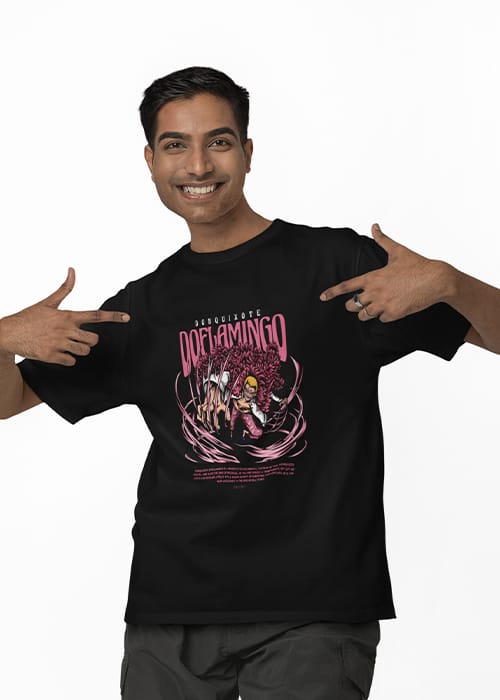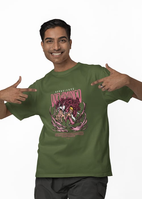 "ONE PIECE - FLAMINGO" Graphic printed MEN's OVERSIZED ROUND NECK HALF SLEEVE T-SHIRT